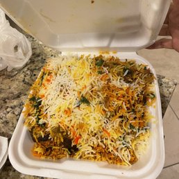 Just tried the rice chicken biryani and it's perfect a little spicy but perfect Guy in the big worm t shirt